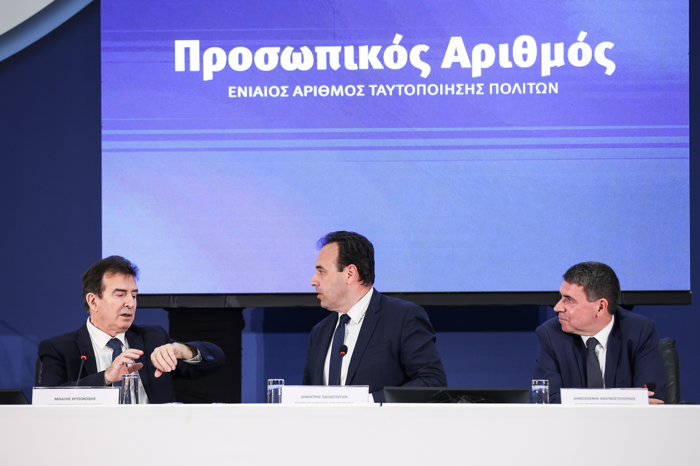 Το νέο βήμα για την ψηφιακή μετάβαση της χώρας με την καθιέρωση του Προσωπικού Αριθμού, του ενιαίου αριθμού ταυτοποίησης των πολιτών, παρουσίασαν σήμερα στο υπουργείο Ψηφιακής Διακυβέρνησης, οι Δημήτρης Παπαστεργίου, υπουργός Ψηφιακής Διακυβέρνησης, Μιχάλης Χρυσοχοΐδης, υπουργός Προστασίας του Πολίτη και ο Δημοσθένης Αναγνωστόπουλος, γενικός γραμματέας Πληροφοριακών Συστημάτων και Ψηφιακής Διακυβέρνησης – υπουργείο Ψηφιακής Διακυβέρνησης, παρουσία μεταξύ άλλων και του διοικητή της ΑΑΔΕ, Γιώργου Πιτσιλή. Κοινή πεποίθηση όλων είναι πως η καθιέρωση του Προσωπικού Αριθμού σηματοδοτεί μια νέα εποχή στις συναλλαγές των πολιτών με το δημόσιο, υπόσχεται την απλοποίηση των διαδικασιών, τη μείωση της γραφειοκρατίας, την ενίσχυση της ασφάλειας και τη βελτίωση της καθημερινότητας.