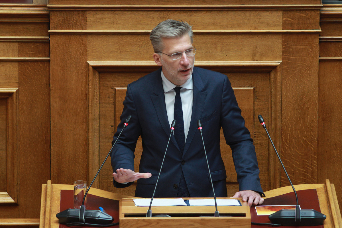 Ο υπουργός Επικρατείας Άκης Σκέρτσος μιλάει κατά τη διάρκεια της 3ης ημέρας της συζήτησης για την πρόταση δυσπιστίας προς την κυβέρνηση στην Ολομέλεια της Βουλής, Αθήνα, Πέμπτη 28 Μαρτίου 2024. Ολοκληρώνεται σήμερα Πέμπτη η συζήτηση στην ολομέλεια της Βουλής επί της πρότασης δυσπιστίας κατά της κυβέρνησης, που κατέθεσε ο πρόεδρος του ΠΑΣΟΚ - ΚΙΝΑΛ, Νίκος Ανδρουλάκης, με τις τοποθετήσεις των πολιτικών αρχηγών και την ομιλία του πρωθυπουργού Κυριάκου Μητσοτάκη. Η ονομαστική ηλεκτρονική ψηφοφορία αναμένεται να ξεκινήσει περί τις 8 με 9 το βράδυ. ΑΠΕ- ΜΠΕ/ΑΠΕ- ΜΠΕ/ΑΛΕΞΑΝΔΡΟΣ ΒΛΑΧΟΣ