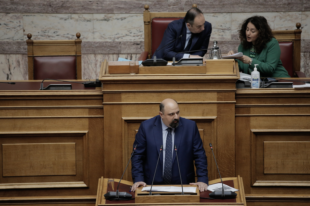 Ο υφυπουργός Κλιματικής Κρίσης και Πολιτικής Προστασίας, Χρήστος Τριαντόπουλος, μιλά κατά τη διάρκεια της συζήτησης για την πρόταση δυσπιστίας προς την κυβέρνηση σε συνεδρίαση της Βουλής, Αθήνα, Τετάρτη 27 Μαρτίου 2024. Συνεχίζεται σήμερα Τετάρτη στην ολομέλεια της Βουλής η συζήτηση επί της πρότασης δυσπιστίας κατά της κυβέρνησης, που κατέθεσε χθες ο πρόεδρος του ΠΑΣΟΚ-ΚΙΝΑΛ, Νίκος Ανδρουλάκης. Αύριο Πέμπτη, η συζήτηση θα επαναληφθεί από τις 9 το πρωί με στόχο, η ονομαστική ηλεκτρονική ψηφοφορία να ξεκινήσει περί τις 8 με 9 το βράδυ. ΑΠΕ-ΜΠΕ/ΑΠΕ-ΜΠΕ/ΚΩΣΤΑΣ ΤΣΙΡΩΝΗΣ