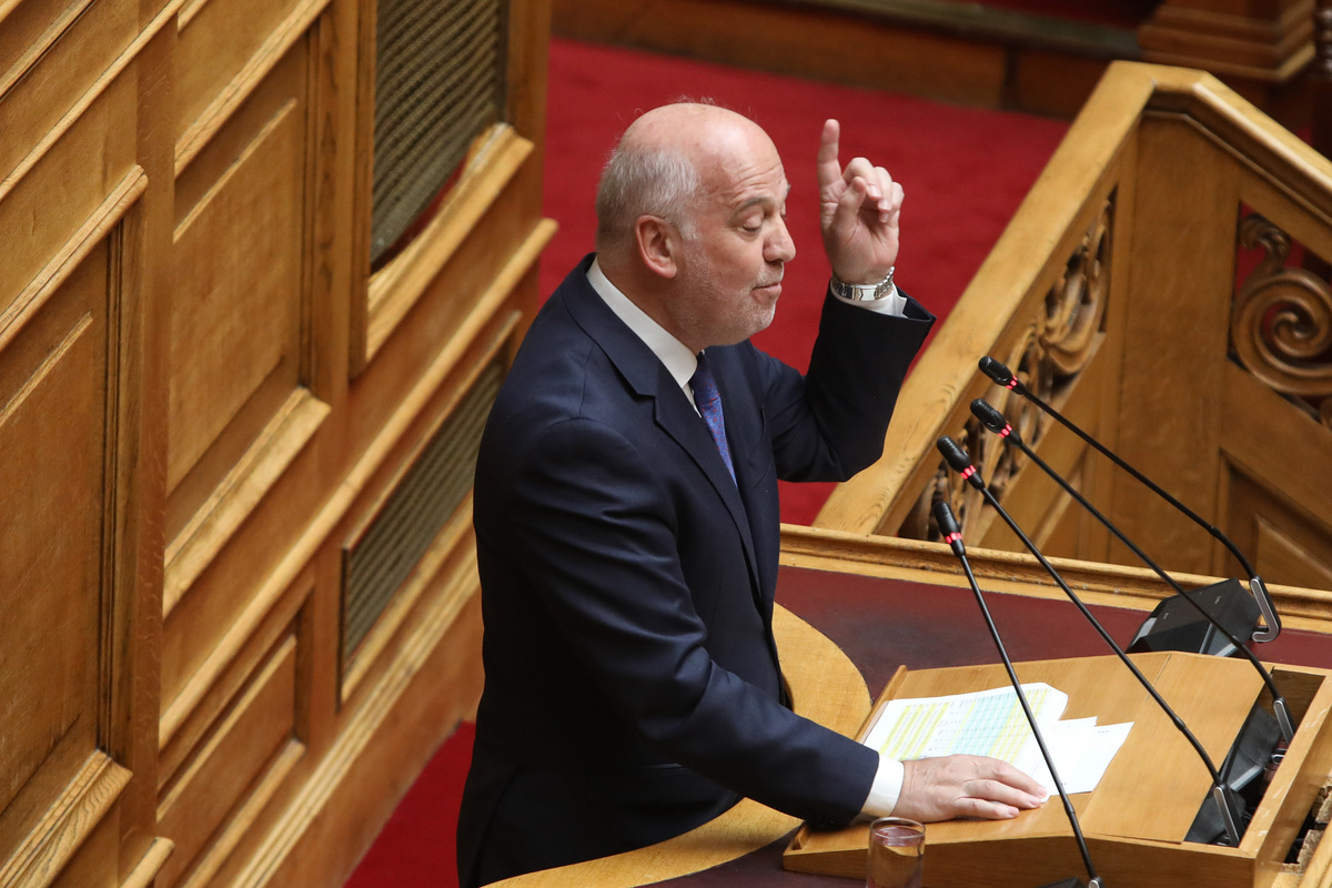 Ο υπουργός δικαιοσύνης Γιώργος Φλωρίδης μιλά κατά τη διάρκεια της συζήτησης για την πρόταση δυσπιστίας προς την κυβέρνηση σε συνεδρίαση της Βουλής, Αθήνα, Τετάρτη 27 Μαρτίου 2024. Συνεχίζεται σήμερα Τετάρτη στην ολομέλεια της Βουλής η συζήτηση επί της πρότασης δυσπιστίας κατά της κυβέρνησης, που κατέθεσε χθες ο πρόεδρος του ΠΑΣΟΚ-ΚΙΝΑΛ, Νίκος Ανδρουλάκης. Αύριο Πέμπτη, η συζήτηση θα επαναληφθεί από τις 9 το πρωί με στόχο, η ονομαστική ηλεκτρονική ψηφοφορία να ξεκινήσει περί τις 8 με 9 το βράδυ. ΑΠΕ-ΜΠΕ/ΑΠΕ-ΜΠΕ/ΓΙΩΡΓΟΣ ΒΙΤΣΑΡΑΣ