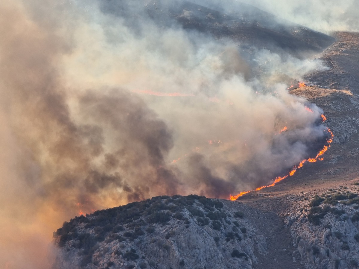 Το μέτωπο ξεπερνά τα 15 με 18 χιλιόμετρα και εκτείνεται από το Κερί, περνά από τον Αγαλά, περνάει πάνω από τη Λιθακιά και φτάνει μέχρι τον Παντοκράτορα. Επιχειρούν και πάλι ένα ελικόπτερο. Η κατάσταση είναι πραγματικά πάρα πολύ δύσκολη.