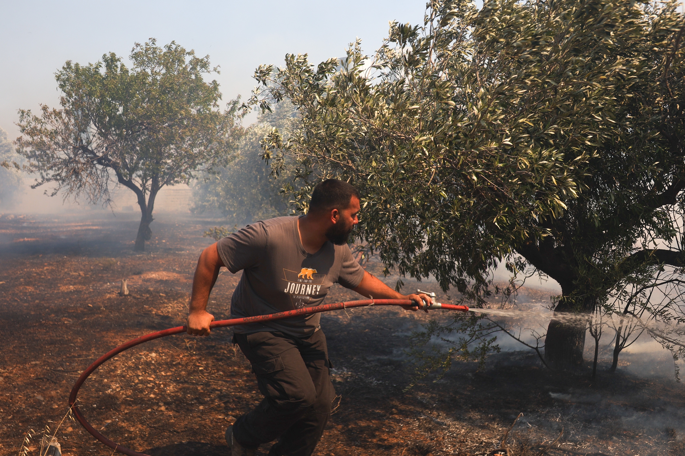 Wildfire in Kouvaras, eastern Attica, Greece on July 17, 2023. / Κατάσβεση πυρκαγιάς στoν Κουβαρά Κερατέας, Aνατολική Αττική, στις 17 Ιουλίου 2023.