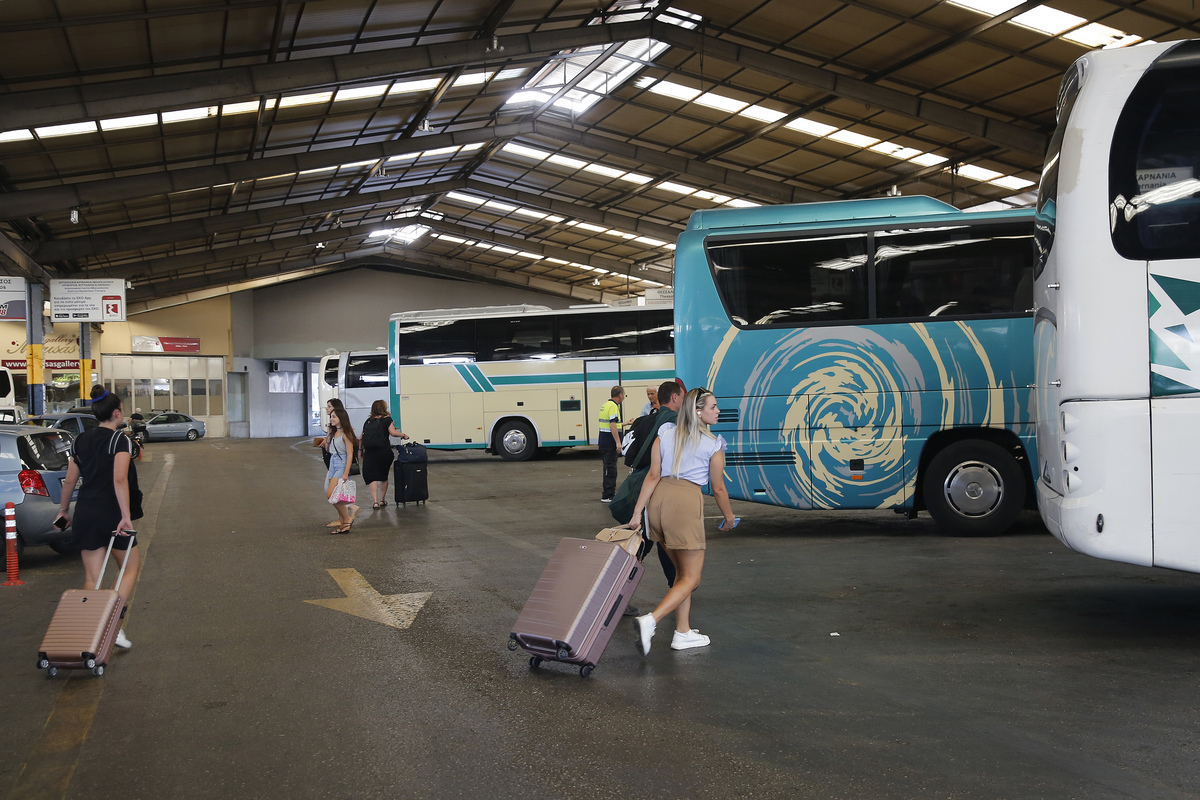 Πολίτες και τουρίστες περιμένουν να επιβιβαστούν στα λεωφορεία του ΚΤΕΛ Κηφισού στην Αθήνα, Σάββατο 5 Αυγούστου 2023. Κορυφώνεται αυτές τις μέρες η αναχώρηση των πολιτών για τις καλοκαιρινές διακοπές προς τα νησιά αλλά και την ηπειρωτική Ελλάδα. ΑΠΕ-ΜΠΕ/ΑΠΕ-ΜΠΕ/ΑΛΕΞΑΝΔΡΟΣ ΒΛΑΧΟΣ
