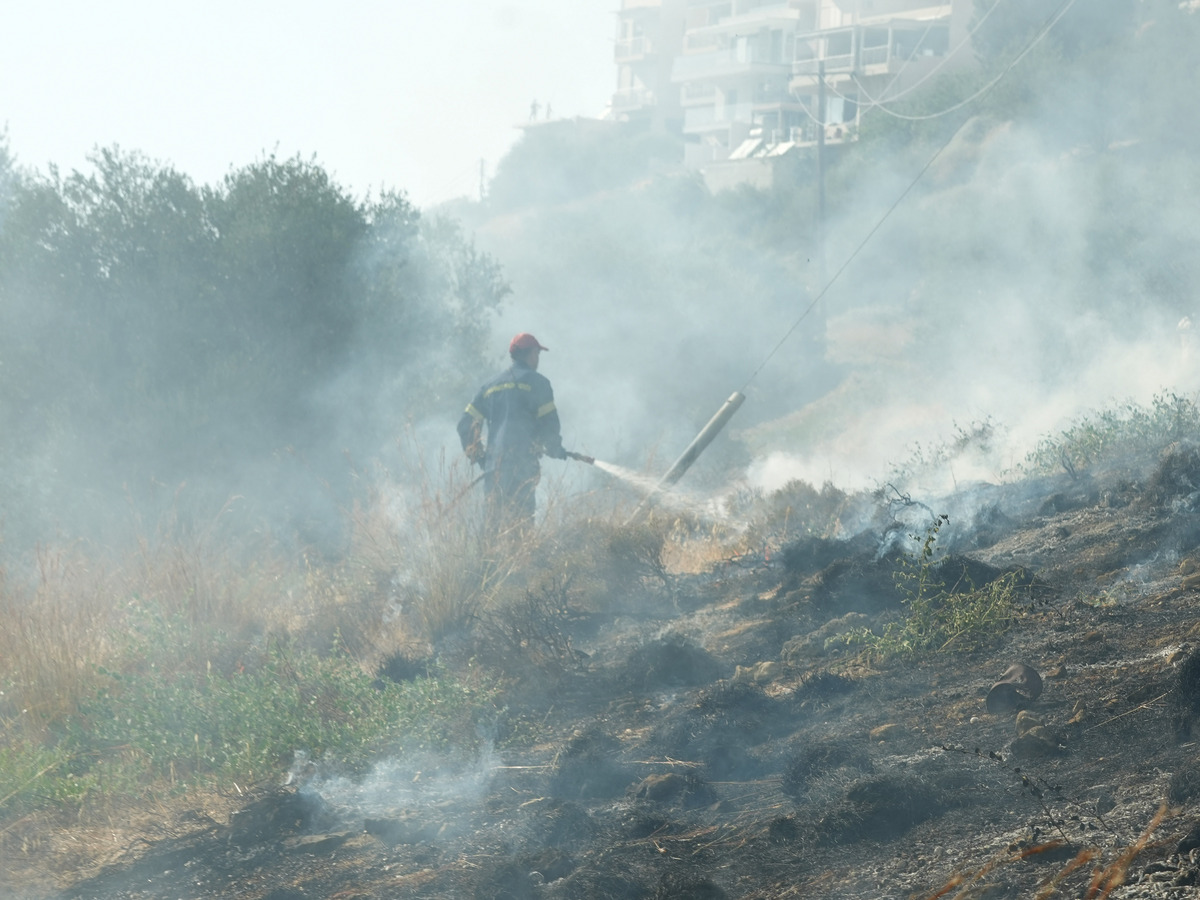 Πυροσβέστης επιχειρεί στην κατάσβεση πυρκαγιάς η οποία εκδηλώθηκε λίγο πριν τις έξι το απόγευμα στην περιοχή μεταξύ Κορώνη Μαγαρά και Μασταμπά, στο Ηράκλειο τη Δευτέρα 24 Ιουνίου 2024. Άμεσα στο σημείο έφτασαν με επτά οχήματα της Πυροσβεστικής Υπηρεσίας συνολικά 22 πυροσβέστες και δύο πεζοπόρα τμήματα, με την επιχείρηση εξαρχής να είναι μεγάλη, καθώς το σημείο που εκδηλώθηκε η φωτιά και καίγονται ξερόχορτα, είναι μέσα σε κατοικημένη περιοχή. Άμεσα ενημερώθηκε και το Ανακριτικό Τμήμα της Π.Υ που θα ερευνήσει τα αίτια εκδήλωσης της πυρκαγιάς που όμως αυτή την ώρα βρίσκεται σε ύφεση. Στο σημείο βρίσκεται και δύναμη της Αστυνομίας. ΑΠΕ-ΜΠΕ/ΑΠΕ-ΜΠΕ/ΝΙΚΟΣ ΧΑΛΚΙΑΔΑΚΗΣ
