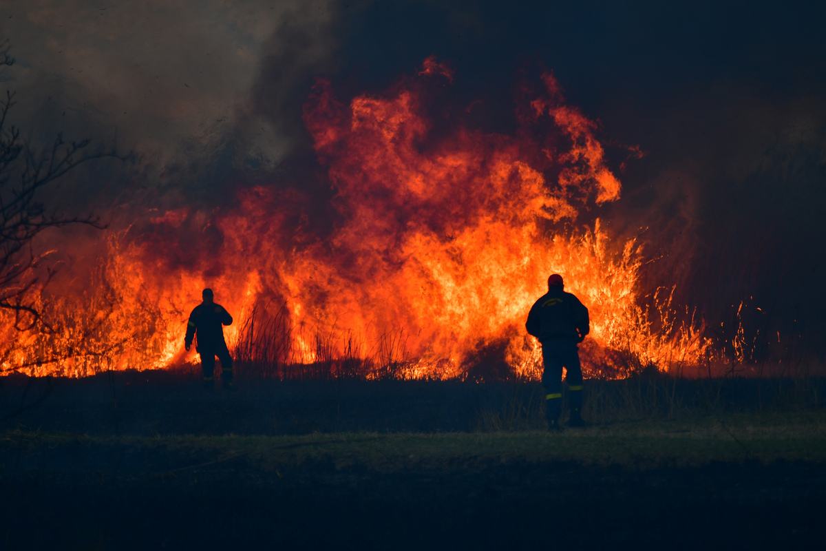 Πυροσβέστες επιχειρούν να θέσουν υπό έλεγχο φωτιά που ξέσπασε λόγω των δυνατών ανέμων στην περιοχή Αγίας Άννας στον Βάλτο Αργολίδας, Δευτέρα 6 Φεβρουαρίου 2023. Για την κατάσβεση της συμμετείχαν πυροσβεστικές δυνάμεις από το Αργος και το Ναύπλιο. Η φωτιά έκαψε μεγάλη έκταση από καλαμιές και αγροτική έκταση ,ενώ απειλήθηκαν και κάποιες οικίες που βρίσκονται στην περιοχή. ΑΠΕ-ΜΠΕ /ΑΠΕ-ΜΠΕ/ΜΠΟΥΓΙΩΤΗΣ ΕΥΑΓΓΕΛΟΣ
