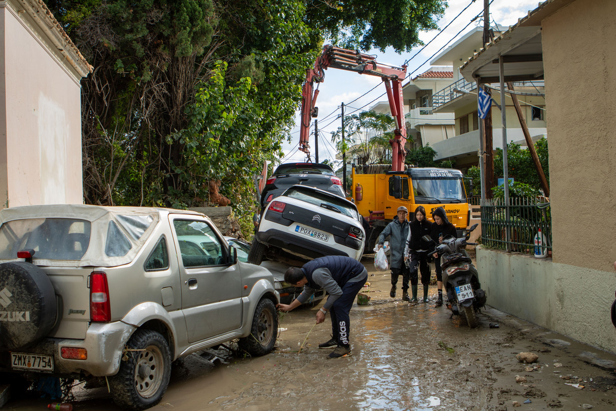 Σκαπτικά μηχανήματα μετατοπίζουν στιβαγμένα αυτοκίνητα σε δρόμο στην Ιαλυσό της Ρόδου, μετά το πρώτο πέρασμα της καοκαιρίας BORA, την Κυριακή 1 Δεκεμβρίου 2024. Σε κατάσταση έκτακτης ανάγκης είναι τις τελευταίες ώρες το νησί της Ρόδου καθώς η κακοκαιρία BORA είναι ακόμα σε εξέλιξη. Μεγάλες ζημιές έχει υποστεί το οδικό δίκτυο στην δημοτικές ενότητες Ιαλυσού και Καλλιθέας, ενώ αντίστοιχα σοβαρά είναι τα προβλήματα και σε πολλά άλλα τμήματα των δρόμων μας, γεγονός που δεν επιτρέπει σε καμία περίπτωση την ασφαλή μετάβαση γονέων και μαθητών στα σχολεία τους, όχι τουλάχιστον πριν ολοκληρωθούν οι σχετικοί έλεγχοι. Κλειστά θα μείνουν τη Δευτέρα (2/12) τα νηπιαγωγεία τα Δημοτικά τα Γυμνάσια και τα Λύκεια της Ρόδου, έπειτα από απόφαση που ανακοίνωσε πριν από λίγο ο Δήμαρχος Ρόδου, Αλέξανδρος Κολιάδης συνέπεια της κακοκαιρίας Bora που έπληξε το νησί το τελευταίο 24ωρο. Το μήνυμα από το 112 προειδοποιεί για ισχυρές καταιγίδες στη Ρόδο από την κακοκαιρία Bora μέχρι αύριο, Δευτέρα το πρωί. Σημειώνεται πως στο νησί έχει τεθεί σε ισχύ 24ωρη απαγόρευση κυκλοφορίας εν μέσω πλημμυρισμένων δρόμων. ΑΠΕ-ΜΠΕ/ΑΠΕ-ΜΠΕ