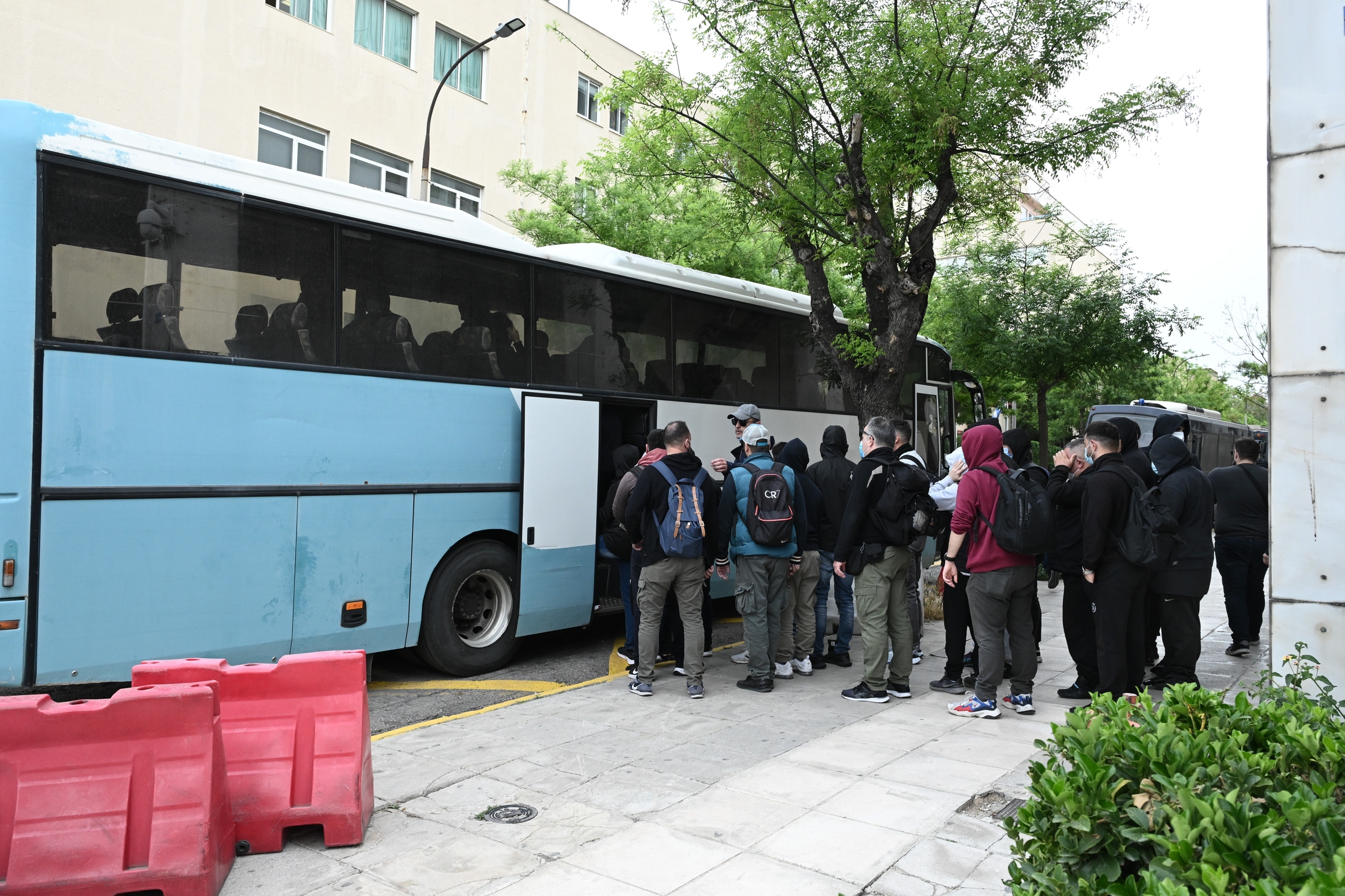 Η μεταγωγή των συλληφθέντων έγινε με τέσσερα λεωφορεία.
