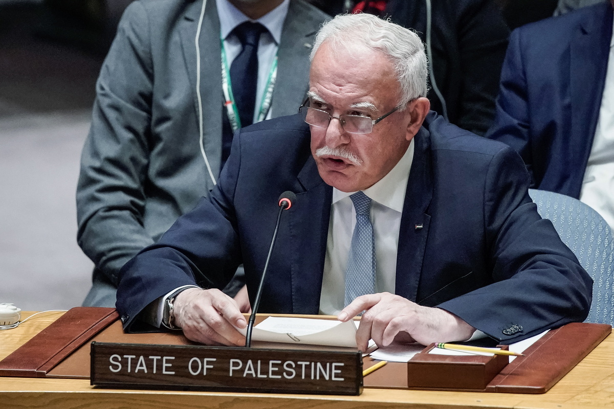 epa10936230 Palestinian Foreign Minister Riyad al-Maliki speaks during a United Nations Security Council meeting called to address the ongoing Israel-Palestianian conflict, in New York, New York, USA, 24 October 2023. Thousands of Israelis and Palestinians have died since the militant group Hamas launched an unprecedented attack on Israel from the Gaza Strip on 07 October, and the Israeli strikes on the Palestinian enclave which followed it. EPA/EDUARDO MUNOZ