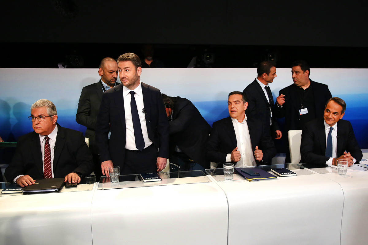 Ο πρόεδρος της Ν.Δ. και πρωθυπουργός Κυριάκος Μητσοτάκης (Δ), ο πρόεδρος του ΣΥΡΙΖΑ-ΠΡΟΟΔΕΥΤΙΚΗ ΣΥΜΜΑΧΙΑ Αλέξης Τσίπρας (2Δ), ο πρόεδρος του ΠΑΣΟΚ-ΚΙΝΑΛ Νίκος Ανδρουλάκης (2ΑΔ) και ο γενικός γραμματέας της ΚΕ του ΚΚΕ Δημήτρης Κουτσούμπας (Α), συμμετέχουν στο debate των πολιτικών αρχηγών, στο στούντιο του ΕΡΤNEWS στο Ραδιομέγαρο της Αγίας Παρασκευής, την Τετάρτη 10 Μαΐου 2023. Στο debate των αρχηγών των έξι κοινοβουλευτικών κομμάτων, που είναι το πρώτο εδώ και οκτώ χρόνια συμμετέχουν ο πρόεδρος της Ν.Δ. και πρωθυπουργός Κυριάκος Μητσοτάκης, ο πρόεδρος του ΣΥΡΙΖΑ- ΠΡΟΟΔΕΥΤΙΚΗ ΣΥΜΜΑΧΙΑ Αλέξης Τσίπρας, ο πρόεδρος του ΠΑΣΟΚ-ΚΙΝΑΛ Νίκος Ανδρουλάκης, ο γενικός γραμματέας της ΚΕ του ΚΚΕ Δημήτρης Κουτσούμπας, ο πρόεδρος της Ελληνικής Λύσης Κυριάκος Βελόπουλος, και ο γραμματέας του ΜέΡΑ25, Γιάνης Βαρουφάκης, την τηλεμαχία συντονίζει ο Γιώργος Κουβαράς και ερωτήσεις θα θέσουν οι δημοσιογράφοι των έξι τηλεοπτικών καναλιών πανελλαδικής εμβέλειας, Γιώργος Παπαδάκης ΑΝΤ1, Παναγιώτης Στάθης OPEN, Ράνια Τζίμα MEGA, Μάρα Ζαχαρέα STAR, Αντώνης Σρόιτερ ALPHA και Σία Κοσιώνη ΣΚΑΪ. Όπως έχει ήδη ανακοινωθεί από την διακομμα