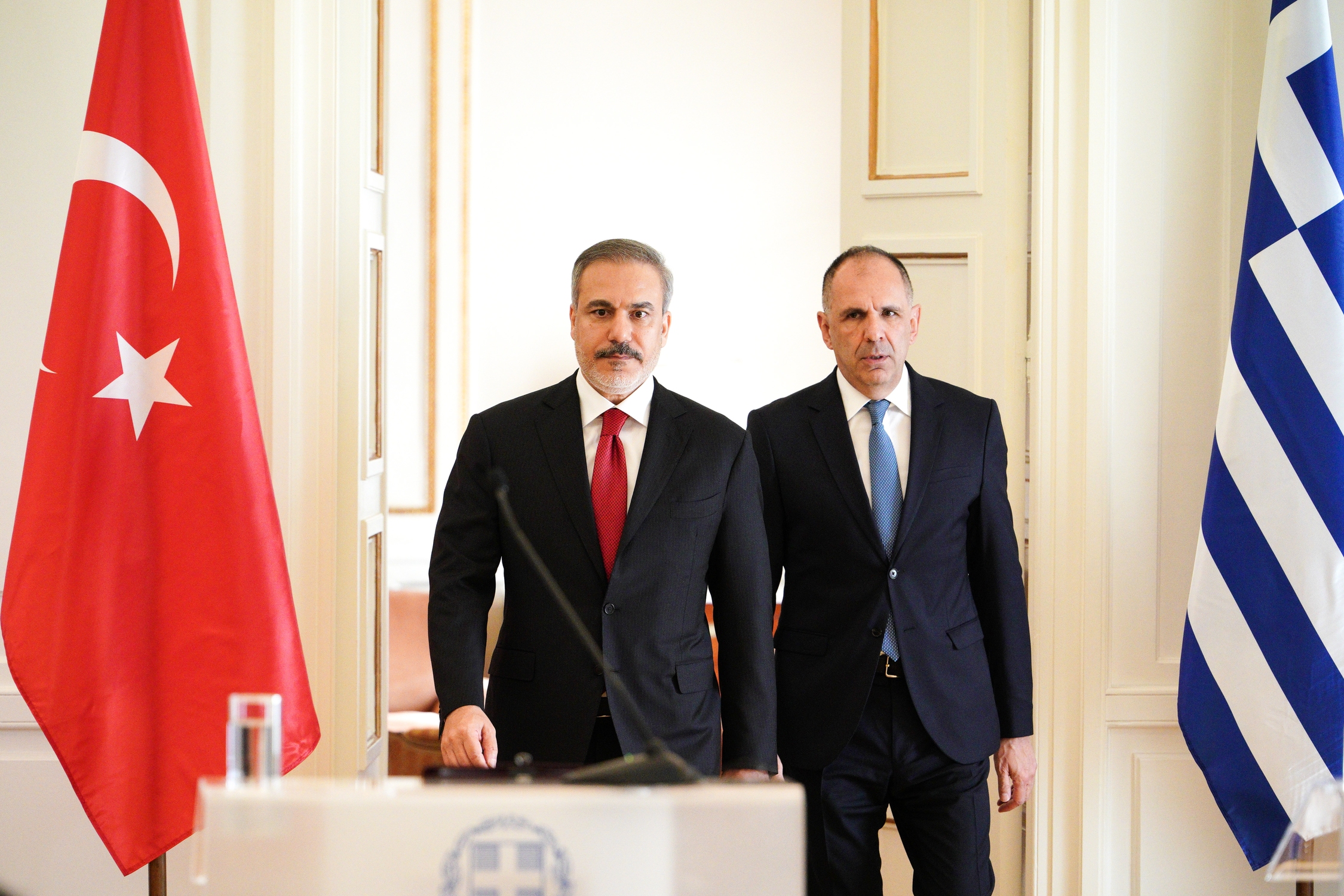 Joint statements by the Greek Minister of Foreign Affairs Giorogos Gerapetritis and his Turkish counterpart in Athens, Greece, on November 8, 2024. / Κοινές δηλώσεις του Έλληνα Υπουργού Εξωτερικών Γιώργου Γεραπετρίτη και του Τούρκου ομόλογό του Χακάν Φιντάν στο Υπουργείο Εξωτερικών της Ελλάδας, Αθήνα, 8 Νοεμβρίου 2024.