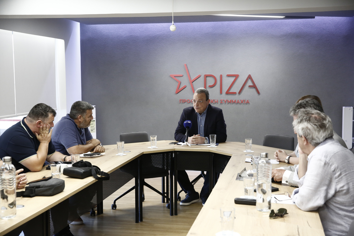 Ο πρόεδρος του ΣΥΡΙΖΑ-ΠΣ, Σωκράτης Φάμελλος συναντάται με τον πρόεδρο και τα μέλη της Εκτελεστικής Επιτροπής της ΠΟΕ-ΟΤΑ, στα γραφεία του κόμματος, Αθήνα, Τετάρτη 25 Ιουνίου 2025. ΑΠΕ-ΜΠΕ/ΑΠΕ-ΜΠΕ/ΓΙΑΝΝΗΣ ΚΟΛΕΣΙΔΗΣ