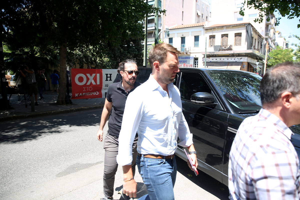 Ο πρόεδρος του ΣΥΡΙΖΑ-ΠΣ Στέφανος Κασσελάκης προσέρχεται στα γραφεία του κόμματος για την συνεδρίαση της Πολιτικής Γραμματείας, με θέμα το μέλλον της εφημερίδας «Η Αυγή» και του ραδιοφωνικού σταθμού «Στο Κόκκινο», Πέμπτη 11 Ιουλίου 2024. ΑΠΕ-ΜΠΕ/ ΑΠΕ-ΜΠΕ/ ΑΛΕΞΑΝΔΡΟΣ ΜΠΕΛΤΕΣ