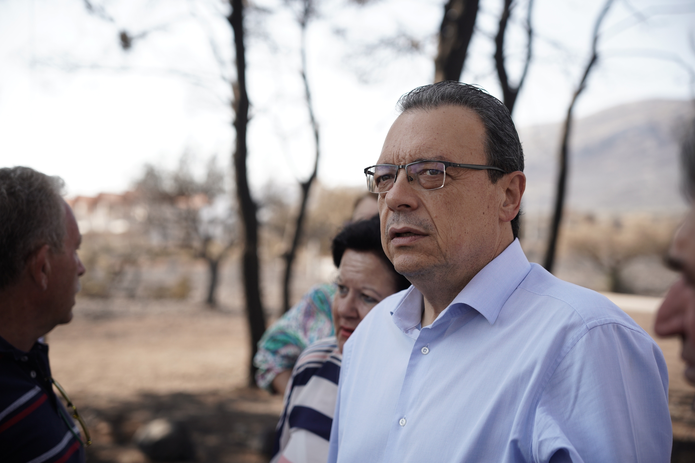 Επίσκεψη του επικεφαλής της Κ.Ο. του ΣΥΡΙΖΑ - ΠΣ Σωκράτη Φάμελλο στις πληγείσες περιοχές του δήμου Σαρωνικού, Αθήνα, 19 Ιουλίου 2023.