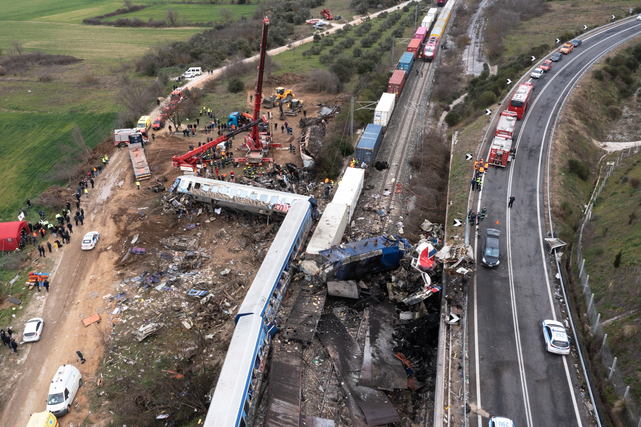Rail accident involving a collision between a cargo and a passenger train at Tempi valley near Evangelismos village northern of Larissa city, Greece on March 1, 2023.