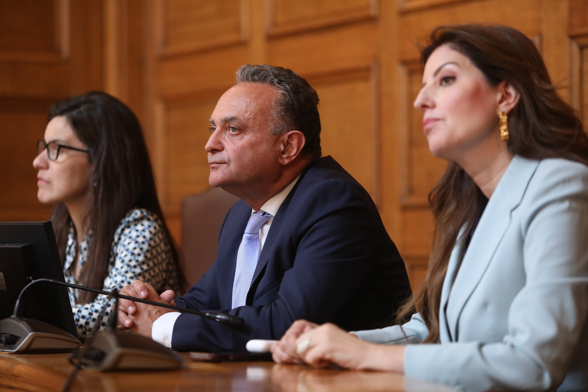Ο βουλευτής της ΝΔ Σταύρος Κελέτσης, η Λυτρίβη Ιωάννα (Α) και η Καραμπατσώλη Κωνσταντίνα (Δ) παρευρίσκονται στην προανακριτική συνεδρίαση για την εκλογή προεδρείου με έργο της την διερεύνηση της πιθανής τέλεσης του πλημμελήματος της παράβασης καθήκοντος από τον πρώην υπουργό Υποδομών και Μεταφορών Κώστα Καραμανλή για την υπόθεση των Τεμπών, Αθήνα, Τετάρτη 25 Ιουνίου 2025. ΑΠΕ-ΜΠΕ / ΑΠΕ-ΜΠΕ / ΓΙΩΡΓΟΣ ΒΙΤΣΑΡΑΣ