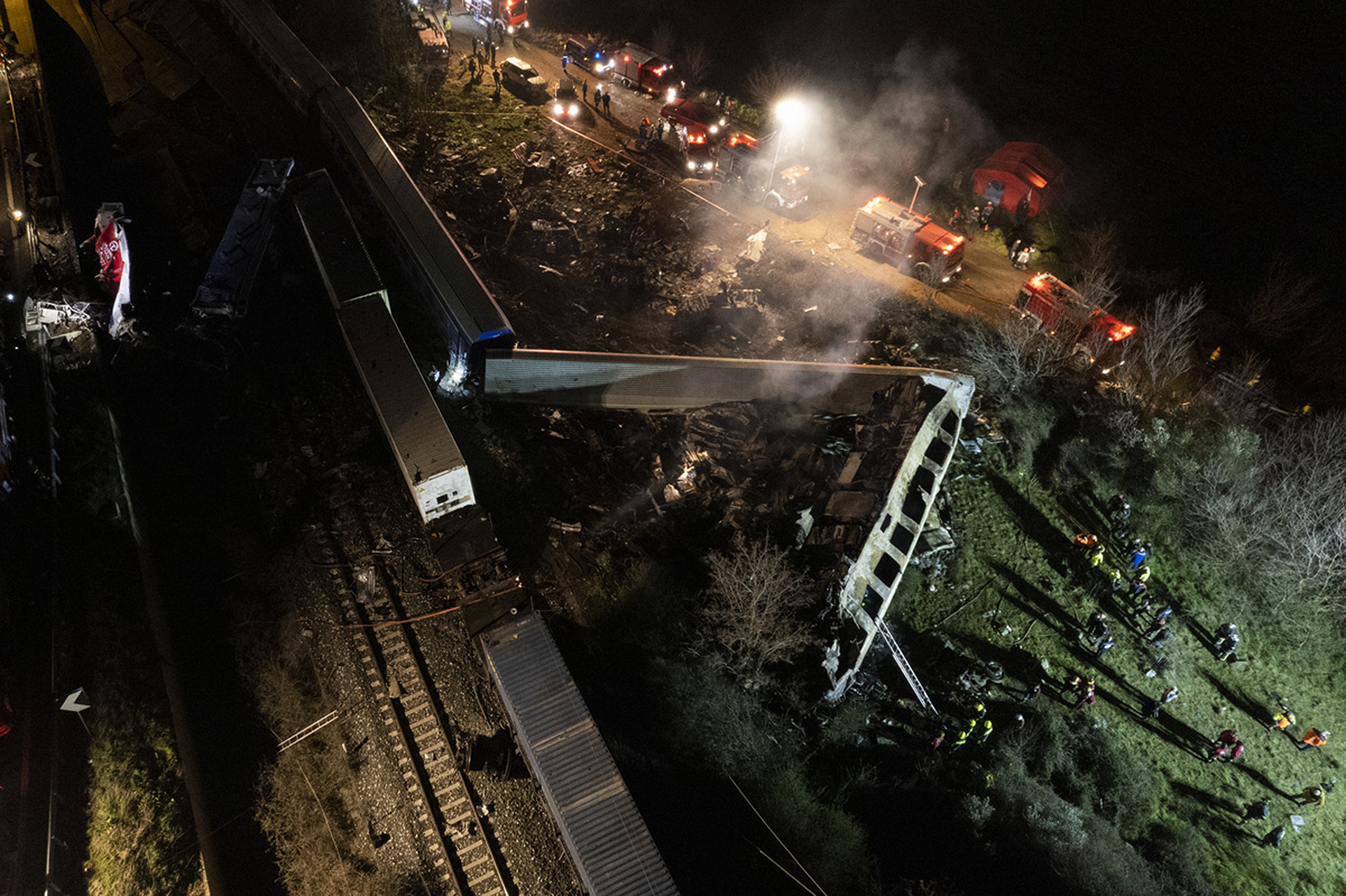 Πυροσβέστες και διασώστες προσπαθούν να απεγκλωβίσουν επιβάτες μετά τη σύγκρουση των δύο τραίνων, σε δυστύχημα που σημειώθηκε έξω από την Λάρισα, Τετάρτη 1 Μαρτίου 2023. Μία επιβατική αμαξοστοιχία συγκρούσθηκε με μία εμπορευματική έξω από τη Λάρισα, ενώ εκτροχιάστηκαν τα δύο πρώτα βαγόνια της επιβατικής αμαξοστοιχίας και εκδηλώθηκε πυρκαγιά. Τουλάχιστον 29 άνθρωποι έχασαν τη ζωή τους και άλλοι 85 τραυματίστηκαν, πολλοί από τους οποίους βρίσκονται σε σοβαρή κατάσταση, στη σύγκρουση επιβατικής με εμπορευματική αμαξοστοιχία στα Τέμπη αργά το βράδυ της Τρίτης.Το τραγικό δυστύχημα έγινε στην περιοχή Ευαγγελισμός, σε μικρή απόσταση από τη Λάρισα και τα Τέμπη.ΑΠΕ-ΜΠΕ/ΑΠΕ-ΜΠΕ/ΑΧΙΛΛΕΑΣ ΧΗΡΑΣ