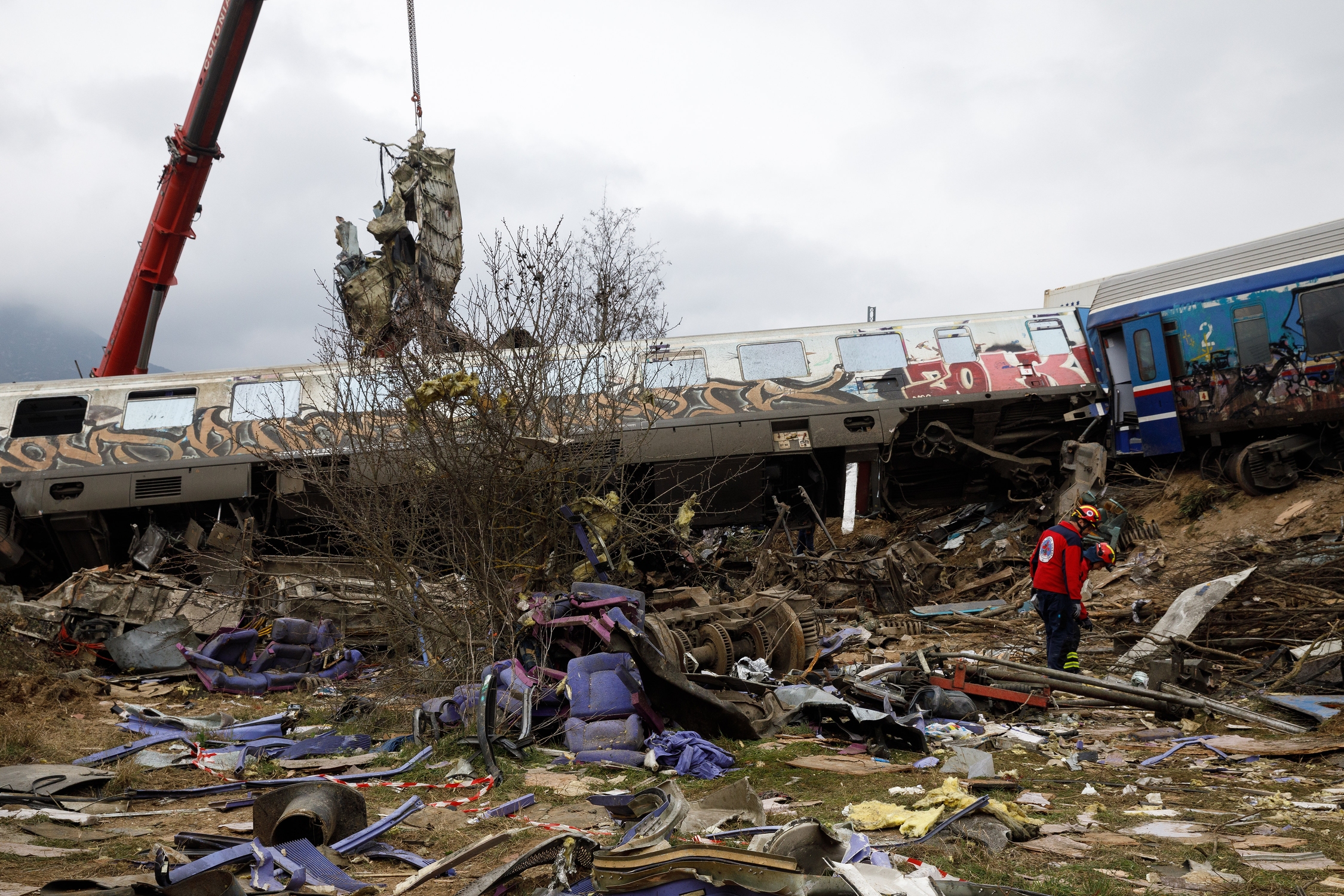 Rail accident involving a collision between a cargo and a passenger train at Tempi valley near Evangelismos village northern of Larissa city, Greece on March 1, 2023.