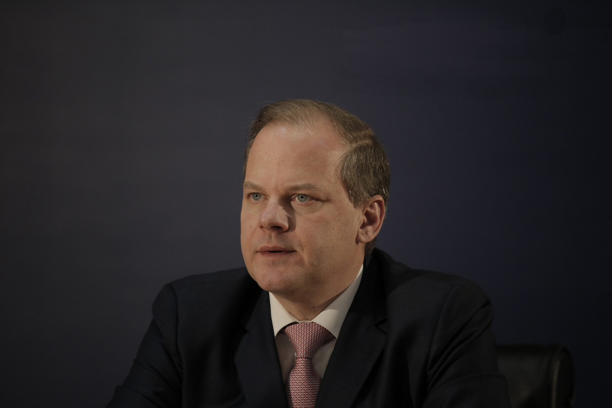 Ο υπουργός Υποδομών και Μεταφορών, Κώστας Καραμανλής, μιλά στους δημοσιογράφους κατά την διάρκεια της υπογραφής δύο προγραμματικών συμβάσεων της ΚΤΥΠ, με το Ινστιτούτο Παστέρ και το Ερευνητικό Κέντρο Αλ. Φλέμινγκ, στο υπουργείο, Αθήνα, Δευτέρα 14 Νοεμβρίου 2022. ΑΠΕ-ΜΠΕ/ΑΠΕ-ΜΠΕ/ΚΩΣΤΑΣ ΤΣΙΡΩΝΗΣ