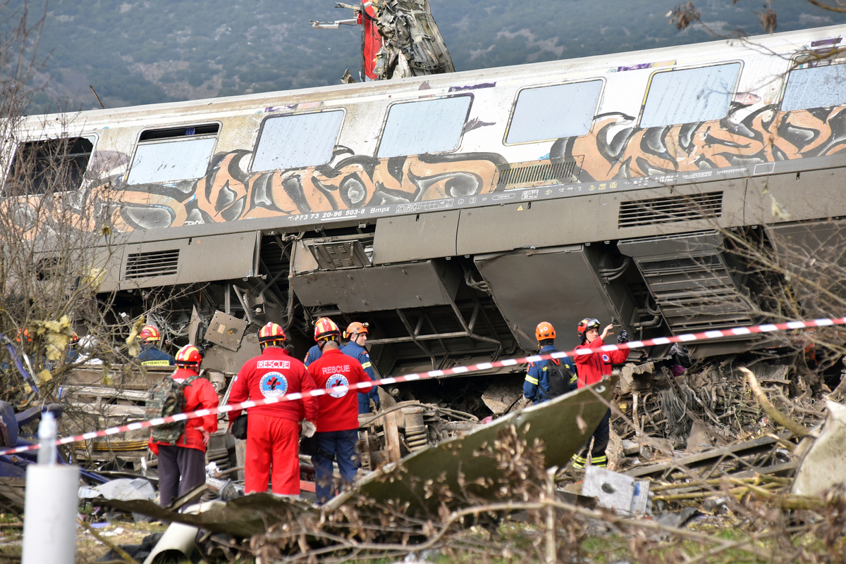 Πυροσβέστες και διασώστες συμμετέχουν στην επιχείρηση εντοπισμού αγνοουμένων, στο σημείο όπου σημειώθηκε το πολύνεκρο σιδηροδρομικό δυστύχημα έξω από τη Λάρισα, Τετάρτη 1 Μαρτίου 2023. Μία επιβατική αμαξοστοιχία συγκρούσθηκε με μία εμπορευματική έξω από τη Λάρισα, ενώ εκτροχιάστηκαν τα δύο πρώτα βαγόνια της επιβατικής αμαξοστοιχίας και εκδηλώθηκε πυρκαγιά. Σε 36 ανέρχονται μέχρι στιγμής οι επιβεβαιωμένοι νεκροί εξαιτίας της σύγκρουσης επιβατικής αμαξοστοιχίας με εμπορευματική, αργά το βράδυ της Τρίτης στην περιοχή Ευαγγελισμός, κοντά στα Τέμπη, σύμφωνα με νεότερη ενημέρωση από τον εκπρόσωπο Τύπου του Πυροσβεστικού Σώματος, τον πύραρχο Βασίλη Βαθρακογιάννη. Παράλληλα 66 άτομα νοσηλεύονται σε νοσοκομεία, εκ των οποίων οι 60 σε απλές κλίνες και οι υπόλοιποι 6 σε ΜΕΘ. ΑΠΕ-ΜΠΕ/ΑΠΕ-ΜΠΕ/ΑΠΟΣΤΟΛΗΣ ΝΤΟΜΑΛΗΣ