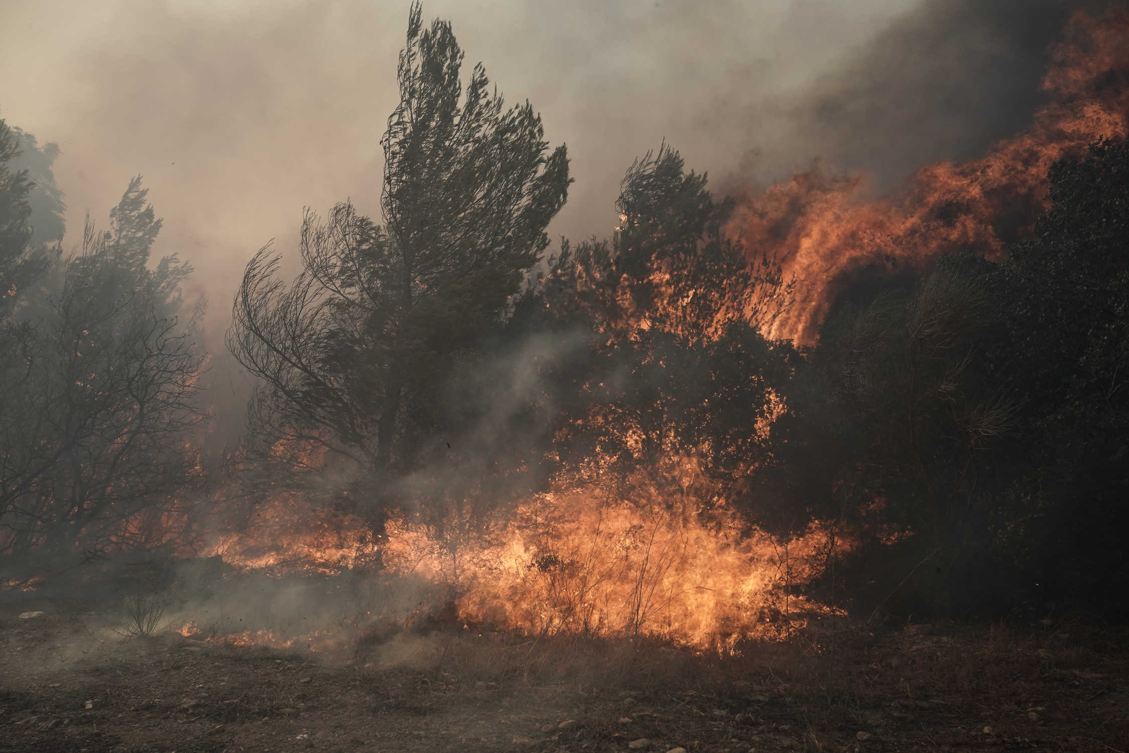 Wildfire in Pallini, eastern Attica, Greece on July 20, 2022. / Κατάσβεση πυρκαγιάς στην Άνω Παλλήνη, ανατολική Αττική, 20 Ιουλίου 2022.