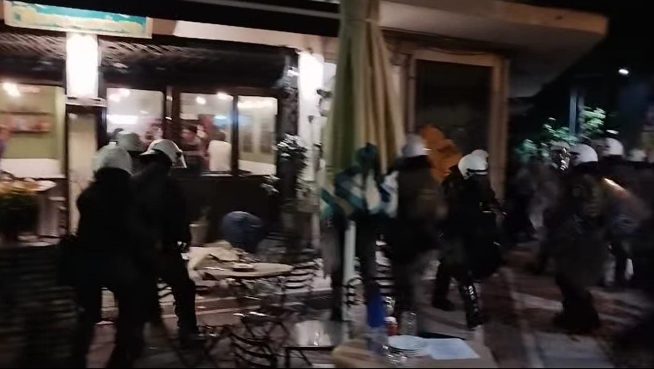Άνδρες των ΜΑΤ έκαναν εκ νέου επίθεση με χρήση των γκλομπ και δακρυγόνων, ενώ από την επίθεσή τους προκλήθηκαν ζημιές σε παρακείμενο μαγαζί εστίασης, όπως φαίνεται και σε βίντεο που τραβήχτηκαν στο σημείο.