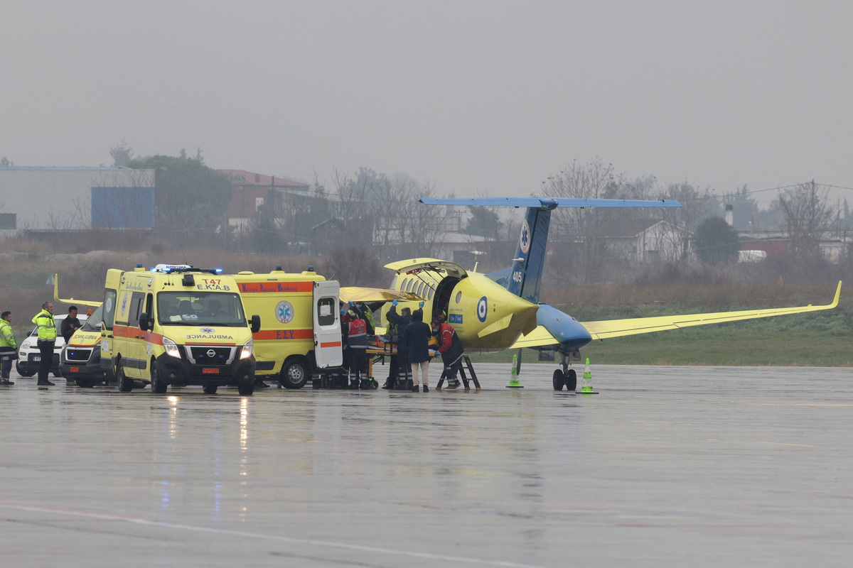 Οι τραυματίες του πολύνεκρου τροχαίου δυστυχήματος με οπαδούς του ΠΑΟΚ, μεταφέρονται από το αεροσκάφος - ασθενοφόρο του ΕΚΑΒ σε ασθενοφόρα, στο αεροδρόμιο της Θεσσαλονίκης, Πέμπτη 29 Ιανουαρίου 2026. Προσγειώθηκε, πριν από λίγο, στο αεροδρόμιο «Μακεδονία» της Θεσσαλονίκης, το αεροσκάφος - ασθενοφόρο του ΕΚΑΒ, που μεταφέρει δύο εκ των τριών τραυματιών του πολύνεκρου τροχαίου δυστυχήματος με οπαδούς του ΠΑΟΚ, που συνέβη την περασμένη Τρίτη 27 Ιανουαρίου, στη Ρουμανία. Το αεροσκάφος με τους δύο τραυματίες απογειώθηκε λίγο μετά τις 11:30 από την Τιμισοάρα και προσγειώθηκε γύρω στις 13:10 στο αεροδρόμιο της Θεσσαλονίκης. Οι τραυματίες θα διακομιστούν με ασθενοφόρα του ΕΚΑΒ στο νοσοκομείο Παπαγεωργίου, όπου σε πρώτη φάση θα οδηγηθούν στο Τμήμα Επειγόντων Περιστατικών, όπου θα γίνουν οι απαραίτητες εξετάσεις και θα μείνουν στη μονάδα βραχείας νοσηλείας έως ότου γίνει η εισαγωγή τους στις κλινικές. ΑΠΕ-ΜΠΕ/ΑΠΕ-ΜΠΕ/ΑΧΙΛΛΕΑΣ ΧΗΡΑΣ