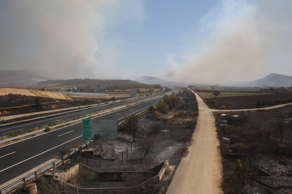ÊáìÝíç Ýêôáóç áðü ôçí ðõñêáãéÜ óôçí Åãíáôßá ïäü óôçí ðåñéï÷Þ ¢âáíôá, ôç ÄåõôÝñá 21 Áõãïýóôïõ 2023. Ãéá ôñßôç ìÝñá óõíå÷ßæåôáé ìå áìåßùôç Ýíôáóç ç ìåãÜëç ðõñêáãéÜ óôçí Áëåîáíäñïýðïëç, ç ïðïßá, óýìöùíá ìå ôçí ÐõñïóâåóôéêÞ, åßíáé åîáéñåôéêÜ äýóêïëï íá åëåã÷èåß, ëüãù ôùí éó÷õñþí áíÝìùí ðïõ ðíÝïõí óõíå÷þò óôçí ðåñéï÷Þ. Tï ìåãÜëï ðñüâëçìá åíôïðßæåôáé óå äýï êýñéá ìÝôùðá êáé êõñßùò óå ìéá ìåãÜëç áíáæùðýñùóç ðïõ õðÜñ÷åé áðü ôï ðñùß êáé åîåëßóóåôáé ôþñá âïñåéïäõôééêÜ ôçò Íßøáò, ðÜíù áðü ôçí Åãíáôßá Ïäü. Óôï ìÝôùðï áõôü ç öùôéÜ êáßåé äÜóïò êïíôÜ óå áíåìïãåííÞôñéåò, åíþ ï áÝñáò áëëÜæåé óõíå÷þò êáôåýèõíóç äçìéïõñãþíôáò åîáéñåôéêÜ äýóêïëåò óõíèÞêåò. Ôï äåýôåñï ìåãÜëï ìÝôùðï åßíáé ôï áíáôïëéêü, ðïõ åêôåßíåôáé ðñïò ôï ÷ùñéü ÌïíáóôçñÜêé, íïôßùò ôïõ Äïñßóêïõ, ðïõ Ý÷ïõí åêêåíùèåß áðü ÷ôåò. Ôï ìÝôùðï ðñïò ôéò ðáñõöÝò ôçò Áëåîáíäñïýðïëçò áðü ÷ôåò åßíáé óå ýöåóç. ÁÐÅ-ÌÐÅ/ÁÐÅ-ÌÐÅ/ÁëÝîáíäñïò ÌðåëôÝò