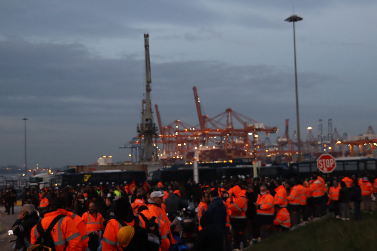 Σε ένδειξη διαμαρτυρίας λιμενεργάτες προχώρησαν στο κλείσιμο της πύλης του Σταθμού Εμπορευματοκιβωτίων Πειραιά, ενώ αντιπροσωπεία της Ένωσης Εργαζομένων Διακίνησης Εμπορευματικιβωτίων στις Προβλήτες του Πειραιά (ΕΝΕΔΕΠ) βρίσκεται από το πρωί έξω από τον προαύλιο χώρο του υπουργείου Ναυτιλίας πραγματοποιώντας συγκέντρωση διαμαρτυρίας για τα μέτρα ασφαλείας ζητώντας συνάντηση με τον υπουργό.
