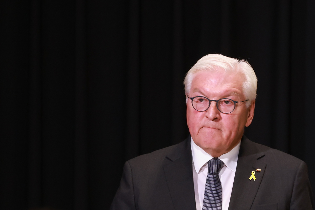 epa11647811 German President Frank-Walter Steinmeier speaks during an inter-religious service in commemoration of the attack on Israel on 07 October at the Kaiser-Wilhelm Gedaechtniskirche church in Berlin, Germany, 07 October 2024. 07 October 2024 marks one year since the Palestinian militant group Hamas launched a surprise attack on Israel, killing 1,200, and one year since Israel began its war on Gaza, killing more than 41,000 and destroying the Palestinian enclave. EPA/CLEMENS BILAN