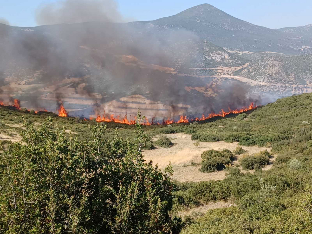 Το βράδυ αναμένεται να είναι δύσκολο με τις δυνάμεις της Πυροσβεστικής να δίνουν μάχη για να ανακόψουν τη φωτιά.