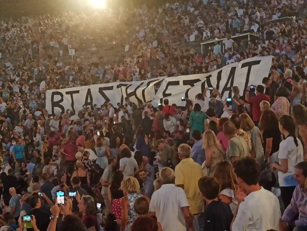 Μετά το τέλος της παράστασης και την υπόκλιση ηθοποιών και συντελεστών, ο ηθοποιός Αινείας Τσαμάτης, βγήκε στη σκηνή και διάβασε την επιστολή του ΣΕΗ για τον Δημήτρη Λιγνάδη. «Από τις 13 Ιουλίου που ο Δημήτρης Λιγνάδης κυκλοφορεί ελεύθερος, είμαστε εκτεθειμένοι. Εκτεθειμένοι σε μία χώρα που, ανεχόμενοι τέτοιες αποφάσεις, καταπατά το αυτονόητο δικαίωμά μας στην αλήθεια και το δίκιο, τα σώματά μας και την κοινή λογική» ανέφερε ο ηθοποιός, διαβάζοντας την ανακοίνωση του ΣΕΗ.