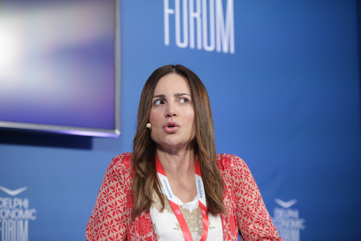 Η Φιλόλογος και Δημοσιογράφος στην ΕΡΤ, TV Βουλή των Ελλήνων, Βίκυ Φλέσσα, μιλάει σε πάνελ κατά την 3η μέρα των εργασιών του 9ου Οικονομικού Φόρουμ των Δελφών, στο Ευρωπαϊκό Κέντρο Πολιτισμού, Δελφοί, Παρασκευή 12 Απριλίου 2024. Το φετινό συνέδριο του Delphi Economic Forum, έχει κεντρικό θέμα «Η Μεγάλη Μετάβαση» και επικεντρώνεται στις πολύπλευρες μεταβάσεις που βιώνει ο κόσμος μας σήμερα. To forum διεξάγεται από τις 10 έως τις 13 Απριλίου 2024. ΑΠΕ-ΜΠΕ/ΑΠΕ-ΜΠΕ/ΧΑΣΙΑΛΗΣ ΒΑΪΟΣ
