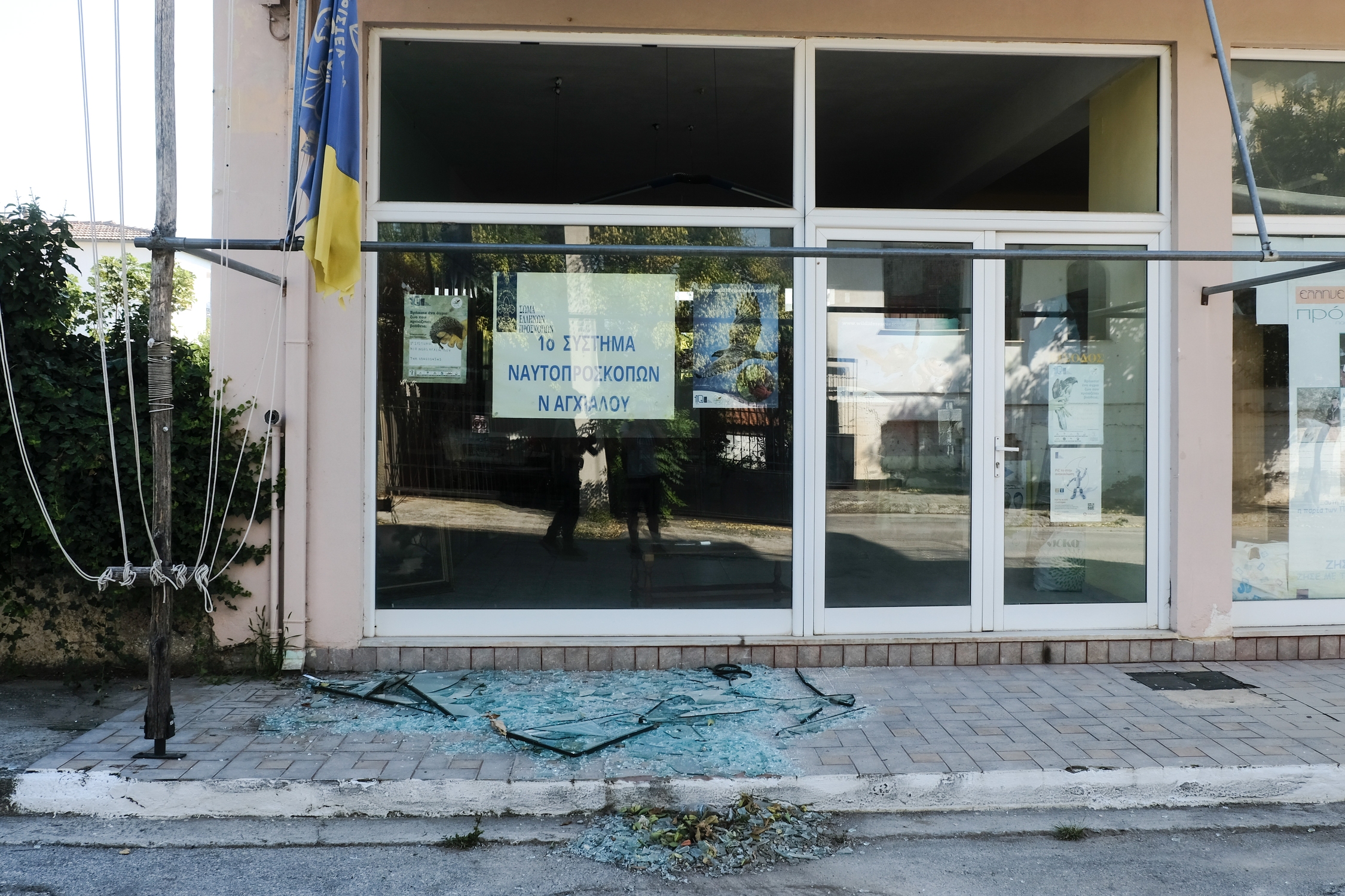 Destruction in the town of Nea Anchialos resulting from an explosion at the ammunition depot at the 111th Air Force Base at Nea Anchialos Airport during a fire, July 28, 2023. / Καταστροφές στην πόλη της Νέας Αγχιάλου που προήλθαν από έκρηξη στην αποθήκη πυρομαχικών στην Πολεμική Αεροπορική Βάση της 111 ΠΜ στο αεροδρόμιο της Νέας Αγχιάλου, κατά την διάρκεια πυρκαγιάς, 28 Ιουλίου 2023.