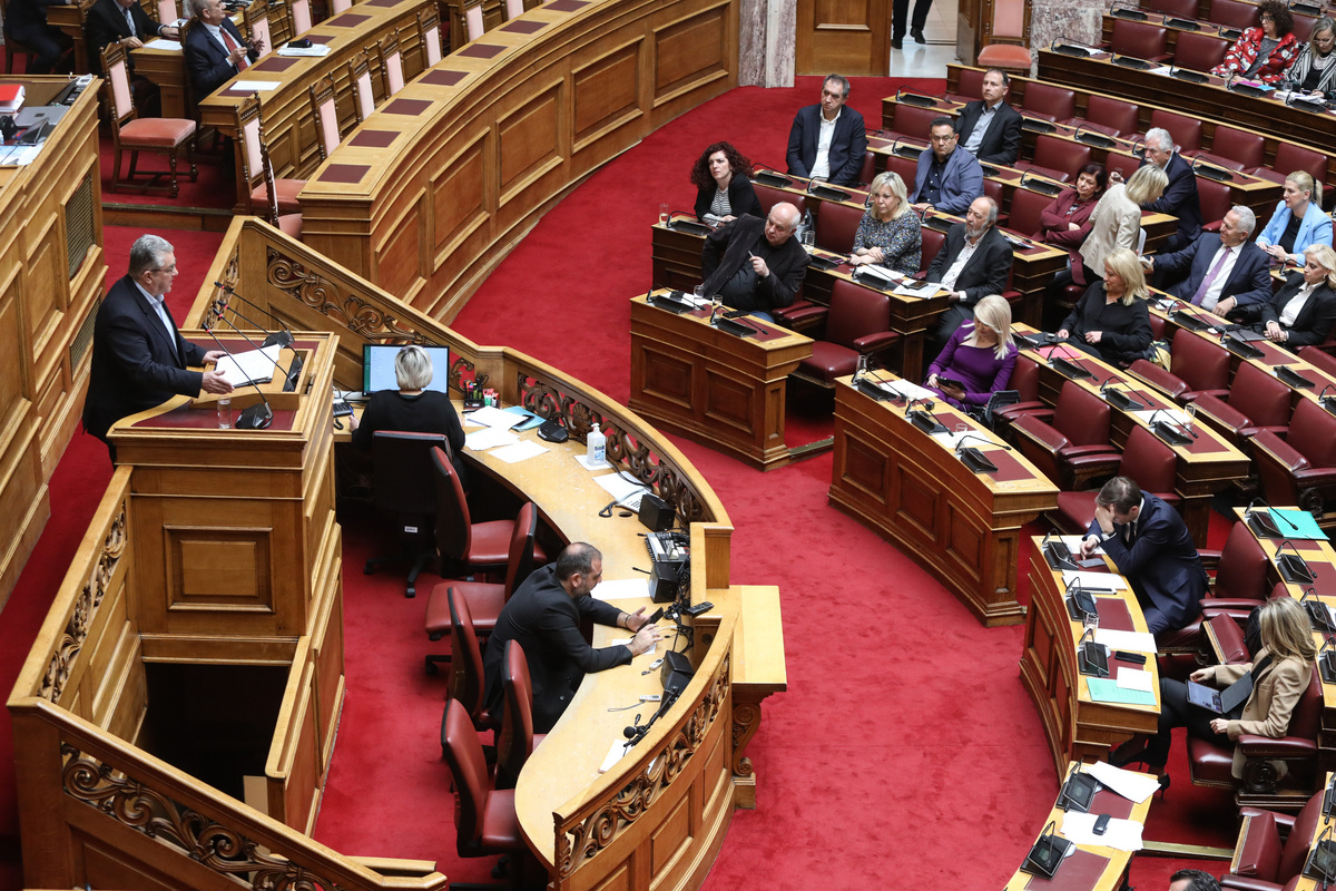 Ο ΓΓ του ΚΚΕ Δημήτρης Κουτσούμπας μιλάει στην ολομέλεια της βουλής, σε συζήτηση, σύμφωνα με το άρθρο 148 του Κανονισμού της Βουλής, επί του κατατεθέντος πορίσματος της Εξεταστικής Επιτροπής με θέμα: «για τη διερεύνηση του εγκλήματος των Τεμπών και όλων των πτυχών που σχετίζονται με αυτό», Αθήνα, Τετάρτη 20 Μαρτίου 2024. ΑΠΕ-ΜΠΕ/ΑΠΕ-ΜΠΕ/ΓΙΩΡΓΟΣ ΒΙΤΣΑΡΑΣ