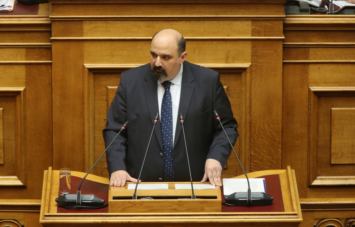 Ο παραιτηθείς υφυπουργός Κλιματικής Κρίσης και Πολιτικής Προστασίας Χρήστος Τριαντόπουλος μιλάει κατά τη διάρκεια της συζήτησης και λήψης απόφασης για τη σύσταση Ειδικής Κοινοβουλευτικής Επιτροπής στη Βουλή, Αθήνα Τρίτη 4 Μαρτίου 2025. Στην Βουλή διεξάγεται η συζήτηση και λήψη απόφαση για τη σύσταση Ειδικής Κοινοβουλευτικής Επιτροπής προς διενέργεια προκαταρκτικής εξέτασης, σύμφωνα με το άρθρο 86 παρ. 3 του Συντάγματος, τα άρθρα 153 επ. του Κανονισμού της Βουλής και το άρθρο 5 του ν.3126/2003 περί της «Ποινικής Ευθύνης των Υπουργών», όπως ισχύουν, επί της υπ’ αριθμ. 1027/5-2-2025 προτάσεως που κατέθεσαν ο αρχηγός της Αξιωματικής Αντιπολίτευσης και πρόεδρος της Κοινοβουλευτικής Ομάδας «ΠΑΣΟΚ-ΚΙΝΗΜΑ ΑΛΛΑΓΗΣ» Νικόλαος Ανδρουλάκης και τριάντα (30) Βουλευτές της Κοινοβουλευτικής του Ομάδας, για την ενδεχόμενη τέλεση του αδικήματος της παράβασης καθήκοντος (άρθρο 259 ΠΚ) κατά το χρονικό διάστημα μεταξύ 3-3-2023 και 6-3-2023 από τον πρώην υφυπουργό παρά τω Πρωθυπουργώ Χρήστο Τριαντόπουλο, κατά την άσκηση των καθηκόντων του και σύμφωνα με τα διαλαμβανόμενα στην πρόταση. ΑΠΕ-ΜΠΕ/ΑΠΕ-ΜΠΕ/ΑΛΕΞΑΝΔΡΟΣ ΒΛΑΧΟΣ