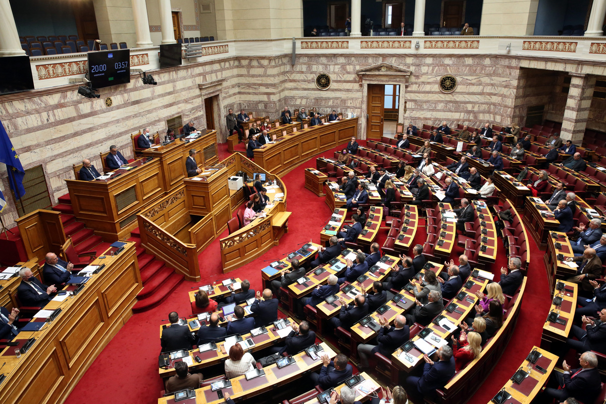 Ο πρωθυπουργός Κυριάκος Μητσοτάκης μιλάει στην Ολομέλεια της Βουλής, στη μόνη συζήτηση και ψήφιση επί της αρχής των άρθρων και του συνόλου του σχεδίου νόμου του Υπουργείου Δικαιοσύνης: «Διαδικασία άρσης του απορρήτου των επικοινωνιών, κυβερνοασφάλεια και προστασία προσωπικών δεδομένων πολιτών», Πέμπτη 8 Δεκεμβρίου 2022. ΑΠΕ-ΜΠΕ/ΑΠΕ-ΜΠΕ/Αλέξανδρος Μπελτές