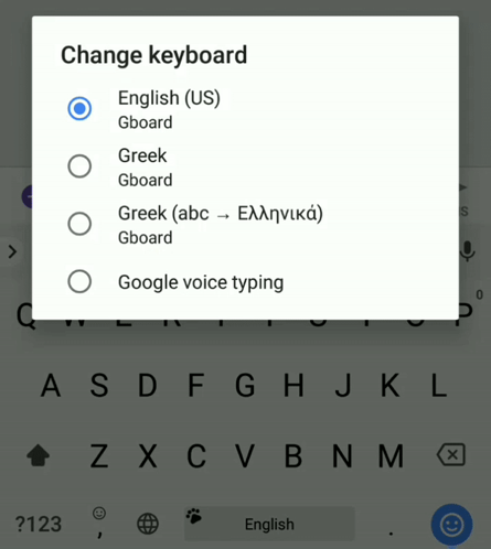- Αρχικά, επιλέξτε το πληκτρολόγιο “Greek (abc -> Ελληνικά)” από το μενού του Gboard στην Android συσκευή σας.