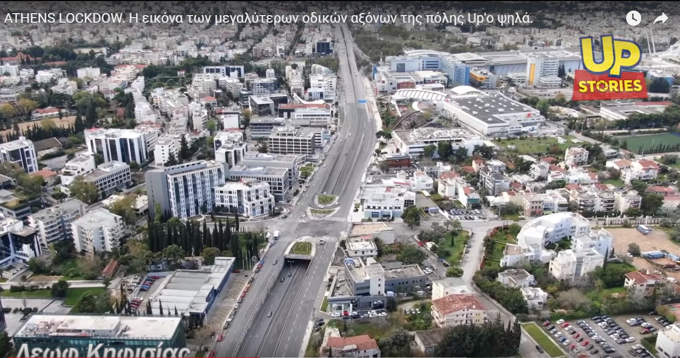 Το κανάλι Up Stories στο YouTube επιμελήθηκε ένα βίντεο, το παρουσιάζει από ψηλά τους μεγαλύτερους οδικούς άξονες της πρωτεύουσας, που άλλοτε ήταν γεμάτοι αυτοκίνητα.