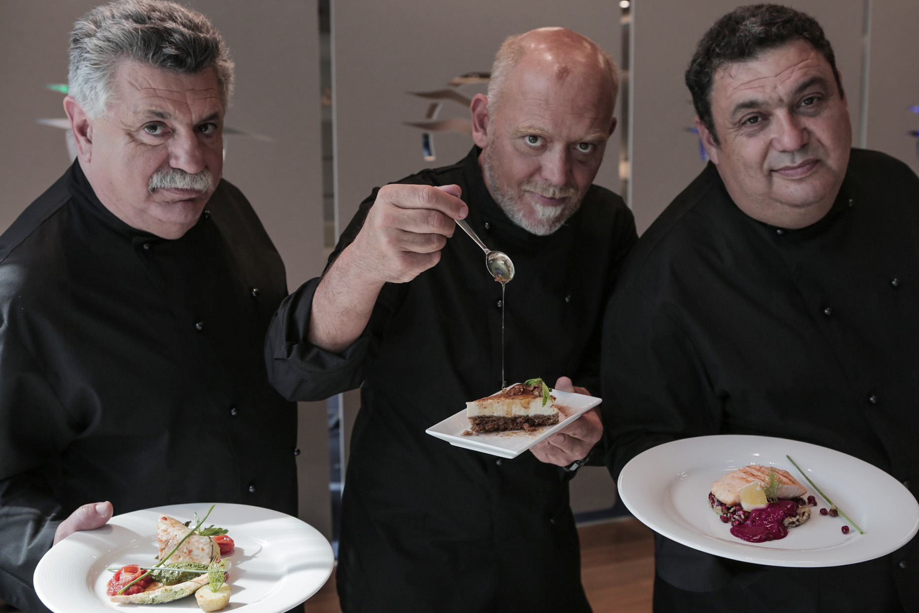 Σταυρούλα Σαλούτση: Διευθύντρια Δημοσίων Σχέσεων & Τύπου AEGEAN, Λευτέρης Λαζάρου: Executive Chef Varoulko Seaside, Χριστόφορος Πέσκιας: Executive Chef Balthazar, Different & Different, JackieO’, Στέλιος Παρλιάρος: Chef Pâtissier, Κωνσταντίνος Λαζαράκης: Master of Wine, Χαρά Νταλέκου: Διευθύντρια Marketing AEGEAN