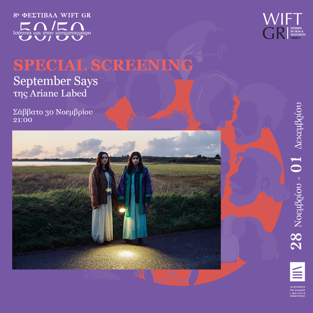 Το Σάββατο 30 Νοεμβρίου 2024, στις 21:00, θα προβληθεί η ταινία της «September Says» που έκανε πρεμιέρα στο 77ο Φεστιβάλ Καννών και αποτελεί την πρώτη μεγάλου μήκους ταινία, που υπογράφει σκηνοθετικά και σεναριακά η Αριάν Λαμπέντ, διασκευάζοντας το μυθιστόρημα «Sisters» της Ντέιζι Τζόνσον, της νεαρότερης συγγραφέα που ήταν ποτέ υποψήφια για το βραβείο Man Booker.