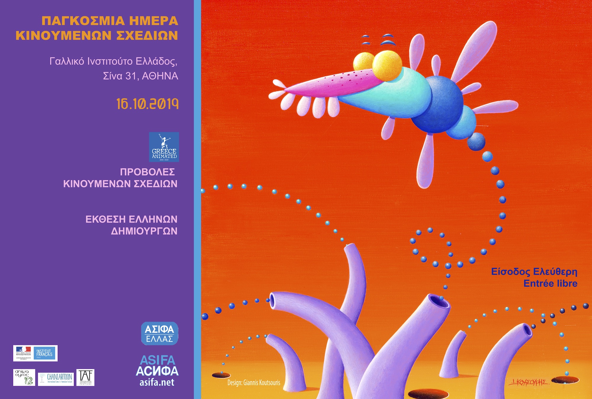 Με αφορμή την Παγκόσμια Ημέρα Κινουμένων Σχεδίων, η ASIFA Hellas προσκαλεί μικρούς και μεγάλους, επαγγελματίες και ερασιτέχνες φίλους του animation, στο Γαλλικό Ινστιτούτο της Ελλάδος, την Τετάρτη 16 Οκτώβρη για μια σειρά από ενδιαφέρουσες προβολές και πολύ ενδιαφέροντα αφιερώματα στις σκηνές Η.Π.Α (Ανεξάρτητη Σκηνή) Ιράν και Μεξικού.