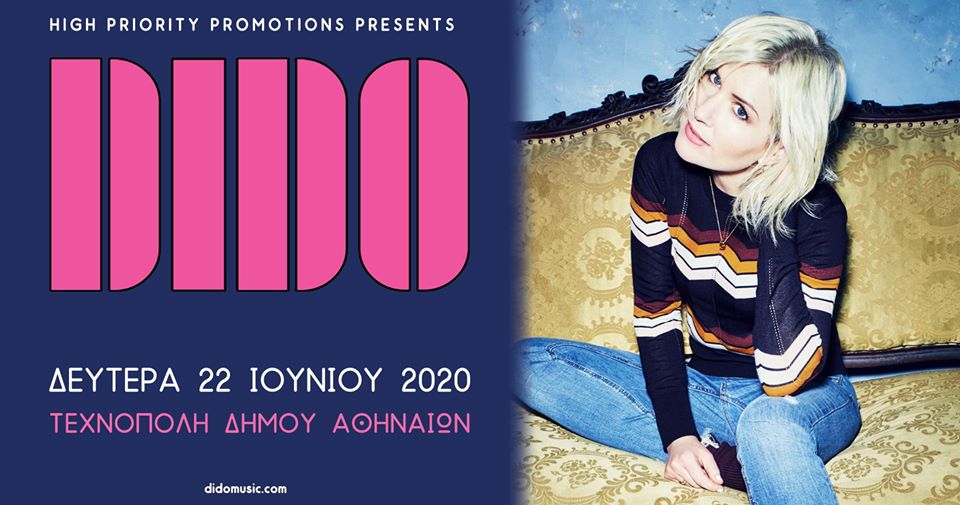 Βάζοντας τέλος στην αναμονή πολλών χρόνων για το ελληνικό κοινό, η Dido θα επισκεφθεί για πρώτη φορά την Αθήνα στις 22 Ιουνίου, στην Τεχνόπολη Δήμου Αθηναίων, σε ένα βράδυ που θα έχει ως μουσική υπόκρουση τη μαγευτική φωνή της!