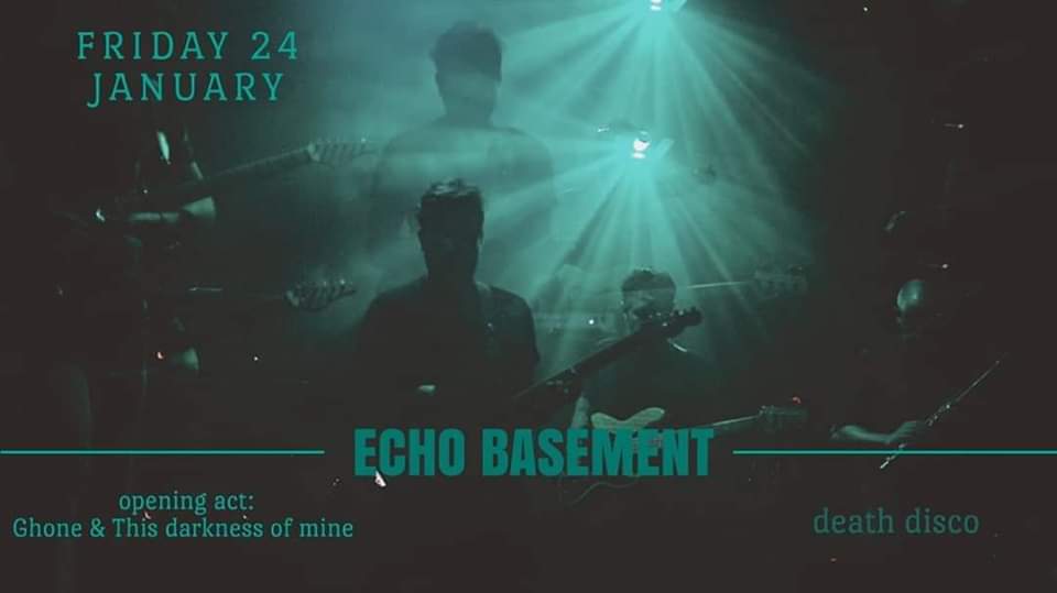 Με σαφή πλέον τη στροφή τους σε διαδρομές post-rock, post-metal και τη χρήση synths και samples, η Παρασκευή 06/12 αναμένεται να είναι μια άκρως μυσταγωγική βραδιά. Οι Echo Basement πληθαίνουν τις εμφανίσεις τους στην πόλη, μετά από μια μακρά περίοδο με επιλεγμένες μόνο συναυλίες με σκοπό να παρουσιάσουν σε ευρύτερο κοινό τον τελευταίο δίσκο τους καθώς και να δώσουν μία γεύση από τους νέους ήχους στους οποίους πειραματίζονται.
