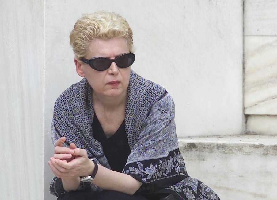 Áðü ôçí êçäåßá ôçò äçìïóéïãñÜöïõ Ì. ÊÜñáëç óôï Á´ Íåêñïôáöåßï Áèçíþí. Óôçí öùôïãñáößá ç Å. Áêñßôá