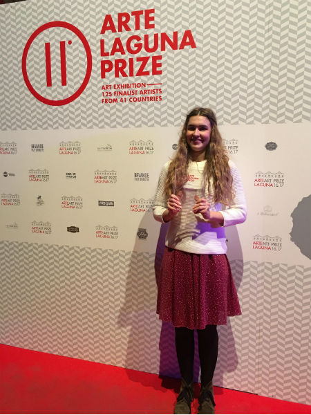 Η 28χρονη καλλιτέχνης, που ζει και εργάζεται στο Λονδίνο, αναπαράστησε ζωντανά στη Βενετία την περφόρμανς «Γυναίκες σε Αγωνία» (Women in Agony). Την είχε παρουσιάσει πρώτη φορά το 2015 στο Λονδίνο, σε έναν από τους εμπορικότερους δρόμους της Ευρώπης, στην Oxford Circus, με 16 γυναίκες ντυμένες ομοιόμορφα, να βαδίζουν σε ώρα αιχμής και στο τέλος, όλες μαζί, ουρλιάζουν δυνατά, ανάμεσα στους καταναλωτές.