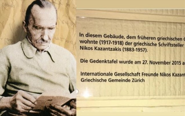 Στις 27 Νοεμβρίου 2015, η Διεθνής Εταιρεία Φίλων Νίκου Καζαντζάκη (ΔΕΦΝΚ) και η Ελληνική Κοινότητα της Ζυρίχης εντοίχισαν στην πρόσοψη του κτηρίου όπου στεγαζόταν τότε το ελληνικό προξενείο αναμνηστική πλάκα για την εκεί διαμονή του μεγάλου Κρητικού.