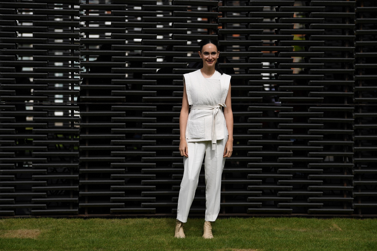epa06800061 Mexican architect Frida Escobedo poses at the Summer Pavilion during a press preview at the Serpentine Gallery in Hyde Park in London, Britain, 11 June 2018. The Serpentine Pavilion 2018 is designed by Escobedo. The temporary structure opens to the public at the Serpentine Galleries from 15 June to 07 October. EPA/NEIL HALL