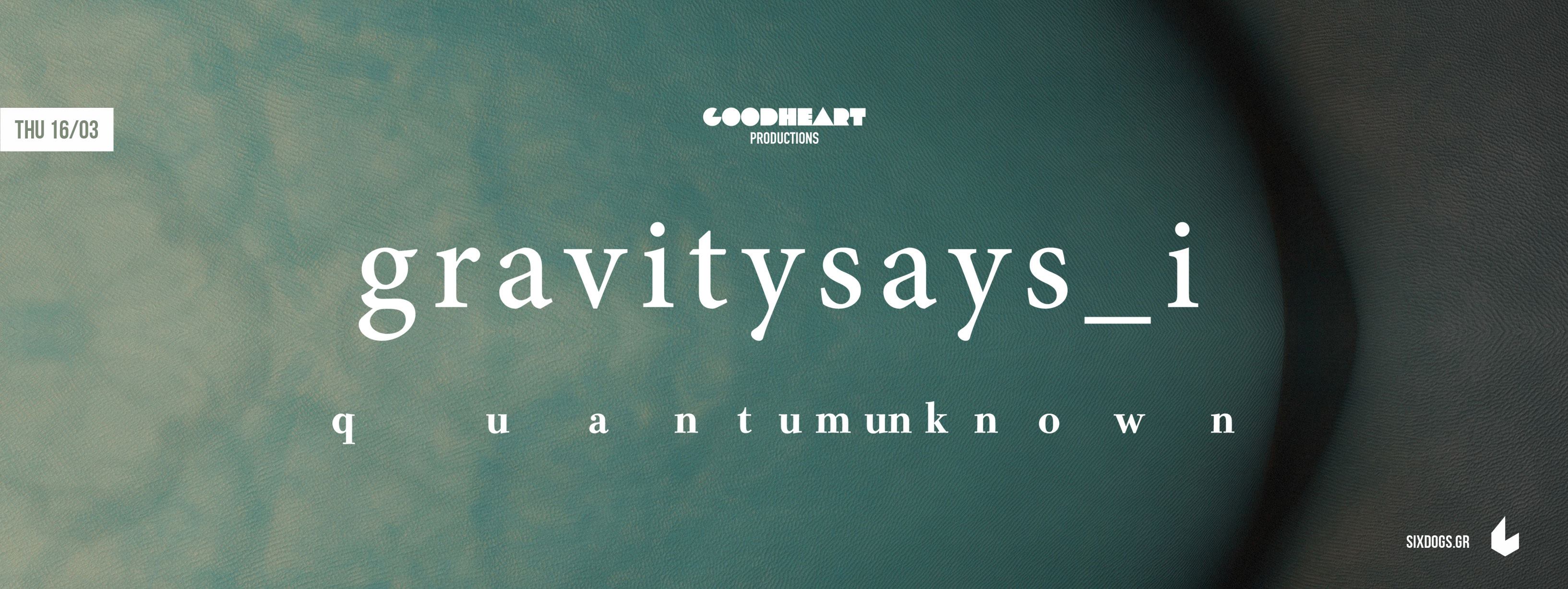 Έχοντας ολοκληρώσει έναν πρώτο κύκλο ζωντανών εμφανίσεων μέσα στο 2016 για την προώθηση του τρίτου τους δίσκου, Quantum Unknown, οι Gravitysays_i ξεκινούν έναν νέο κύκλο επαφής με το κοινό μεταφέροντας επί σκηνής πρόσφατο αλλά και παλιότερο υλικό τους. Τα live τους λιτά και μυσταγωγικά αφήνουν την μουσική στο προσκήνιο και τους ίδιους να αιωρούνται στις επόμενες αναζητήσεις που είναι ήδη εδώ.