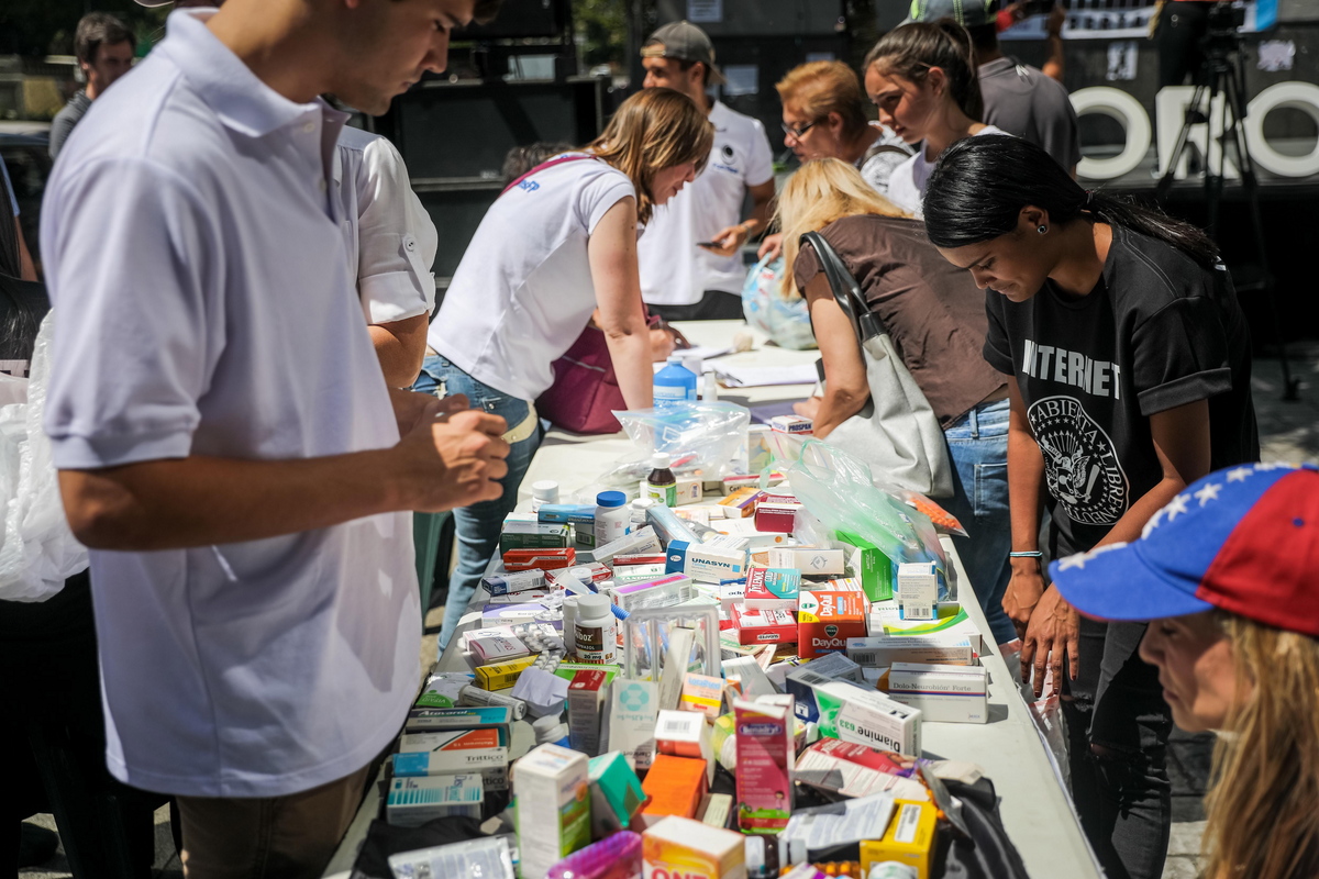 epa07357580 Members of the non-governmental organization Foro Penal Venezolano (FPV) participate in an event organized to deliver food and supplies to of relatives political prisoners, in Caracas, Venezuela, 09 February 2019. EPA/MIGUEL GUTIERREZ