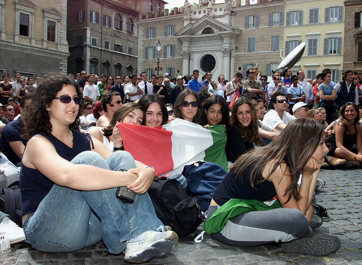 ROM14 - 20020603 - ROME, ITALY: Italian supporters watch the Italy vs. Ecuador World Cup match on a giant screen on Farnese square in downtown Rome, 03 June 2002. EPA PHOTO / ANSA / ALESSIA PARADISI